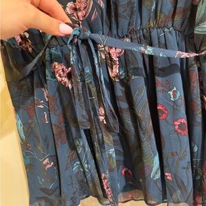 Elegant wrap blouse with floral print. Features a deep V-neck and flowing sleeves. Perfect for any occasion.