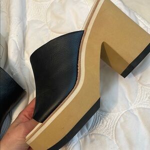 Step out in style with these chic black leather platform sandals from Dolce Vita. Perfect for any occasion, these sandals offer both comfort and elegance. Only worn a couple of times! Show some scuffs on side. Black part of the shoe needs to be cleaned on top.