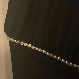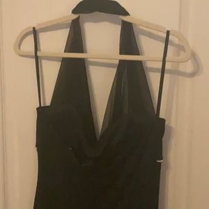 Great stretchy material for a bodycon fit. Mesh halter, hidden zipper with hook and eye closure at back. Rhinestones around lower bust line. Simply Stunning!