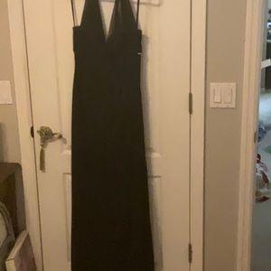 A dazzling mesh halter formal from from Betsy & Adam by Linda Burrell in a size 14. 17” armpit to armpit. 16” seam to seam across waist. 57” from top of halter to hem. 46” from top of bust to hem.