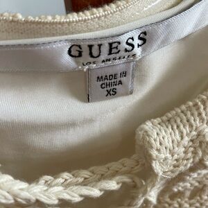 Elegant cream crochet dress featuring a stylish lace-up front. Perfect for any occasion.