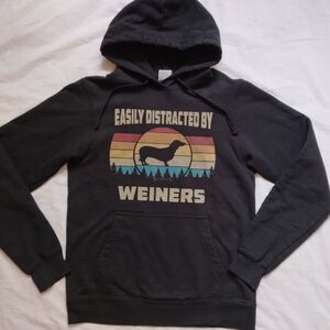 Easily Distracted By Weiners Black Graphic Sweatshirt Hoodie Dachshund Small.