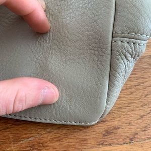 Has a few marks on leather as seen in picture and some tiny marks on the inside of lining