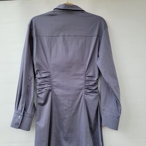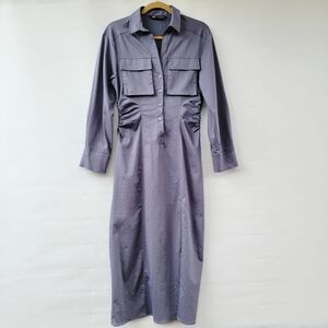 Zara Womens Medium Utilitarian Minimalist Gray Long Sleeve Midi Long Shirt Dress
