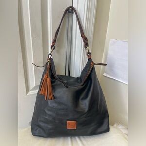 This stylish tote bag features a sophisticated blue and black design, perfect for any occasion. The elegant look is enhanced by a chic bow detail, making it a must-have accessory. Sliver tone hardware, minimal signs of wear. 12 x 8.5 x 5.5 inches