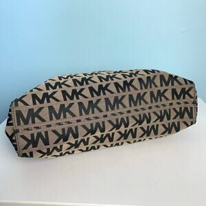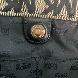 Elevate your style with this stunning Michael Kors Jet Set Tote! Featuring the iconic black and tan 'MK' monogrammed canvas, complemented by luxurious gold-toned hardware, this tote is both fashionable and functional.