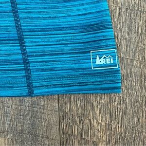 Embrace the outdoors with the REI Women’s Quarter-Zip Hooded Pullover, a versatile piece sized small, perfect for activewear and casual outings. The athletic fit complements your form, while the long sleeves with fitted cuffs and thumb holes offer added comfort and functionality. Stripes in a serene blue shade give it a classic sporty look, suitable for a range of activities from running to hiking.