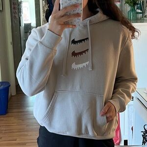 Tan Nike drip logo hoodie. Nike logo, hoodie from H&M. Says size XL but fits like a size M. In good condition, really soft and comfortable material! Free to make an offer or create a bundle for discounted pricing ✨
