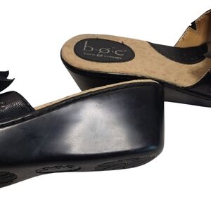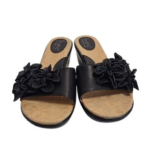 B.O.C. Women's Black Leather Floral Wedge Slide On Sandals Size 8