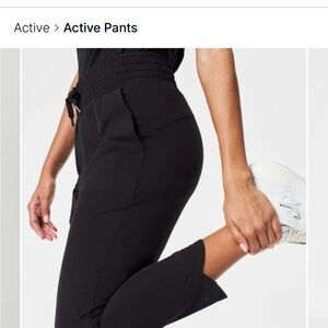Spanx Out Of Office trouser, size M in black. EUC, worn twice. Tulip hem and wide waistband. Ankles of both pants have snags in material from washing, shown. Priced accordingly.