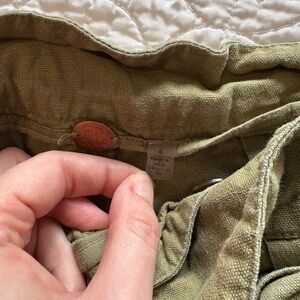 High waisted pants with belt, in a beautiful green color! These were a staple in my closet before I got pregnant, unfortunately they don’t fit anymore. There are a couple of bleach spots as seen in pictures but they are hardly noticeable.