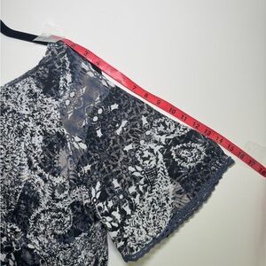 Free People Midnight Blue, White & Gray Patterned Mini Dress w Waist Tie - Small