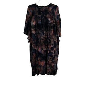 Torrid Watercolor Tie-Dye Gauze Smocked Flutter Sleeve Tunic Top (5X)