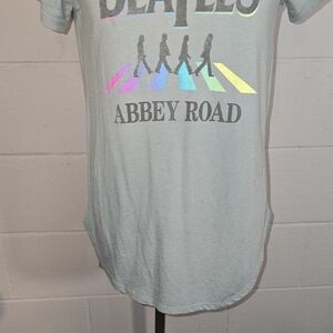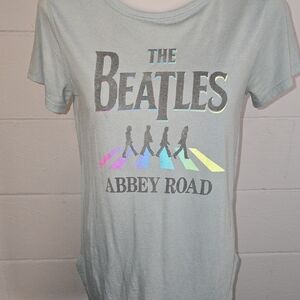 This stylish grayis blue t-shirt features The Beatles Abbey Road design, perfect for young fans. Comfortable and trendy, it's a must-have for any wardrobe.
