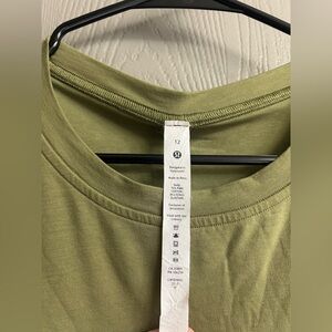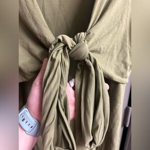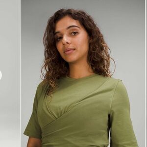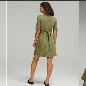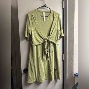 NWOT Lululemon Cotton Wrap Front Dress in the shade bronze green. Can tie in the front or the back. Super soft and supportive. Has a slit in the front.