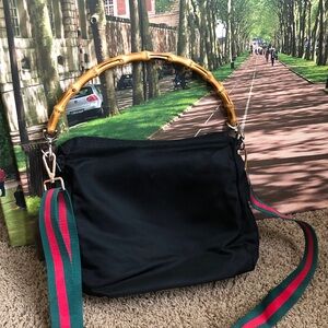 Featuring a sleek black design with a stylish floral scarf accent, this bag combines fashion and functionality.