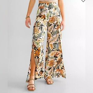 Elevate your style with these vibrant tropical print wide-leg pants. Perfect for a casual day out or a beach getaway. The colorful design adds a fun and lively touch to your wardrobe.