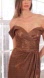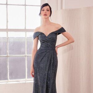 New Off Shoulder Sheath Glitter Dress w/ Leg Slit & Mid-Open Zipper Back CD T605