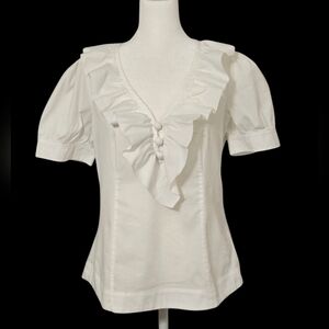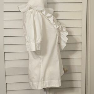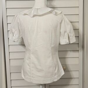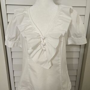 Banana Republic Elegant White Ruffle Blouse Puff Sleeves Size 4P