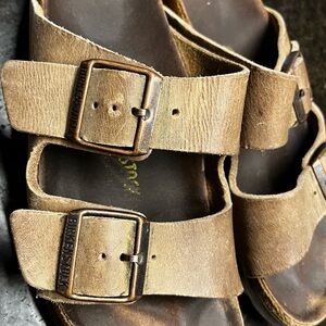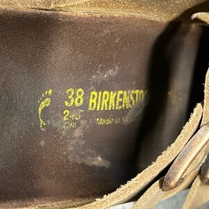 Pre-owned, fair condition. Lots of wear left. Birks are built to LAST! See photos for details and measurements. 38 converts to 7, but I wear size 7.5-8 and these fit me.
