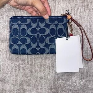 NWT Coach Corner Zip Wristlet in Signature Denim