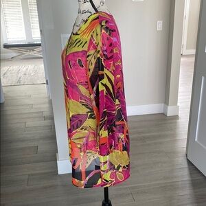 Add a splash of color to your wardrobe with this vibrant women's top. Featuring a stunning mix of pink, yellow, and black, this top is perfect for making a bold statement. Ideal for casual outings or dressing up for a night out.