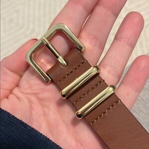 Stylish brown belt with a sleek gold buckle. Perfect for any outfit.