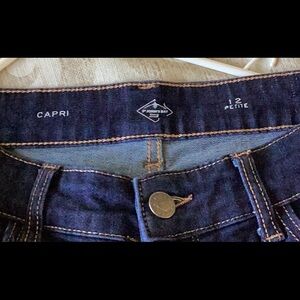 These dark wash jeans capris offer a sleek cut, perfect for a modern and versatile look. The classic fit ensures comfort and style, making them a staple in any wardrobe.