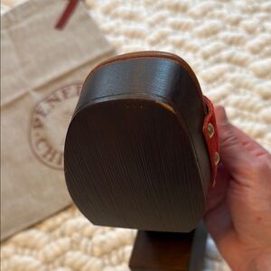 Such fun mules! Brand new, never worn. Vibrant red color with brown detailing. 3” inch heel, size 40 which translates to a US 9. Padded footbed and super comfortable.