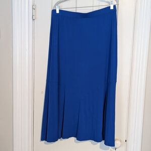 Chico's blue skirt in a petite size. Stylish and comfortable. Not sure why this says petite. I'm 5'7" and long on me. Not floor length but not mid calf either. Measures 17-in waist and 34-in length. Online states according to Chico's size chart this would be a size 12, or large.