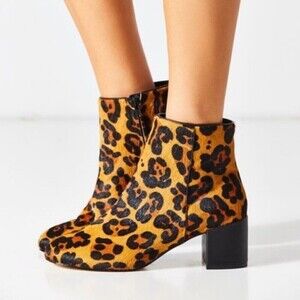 Urban Outfitters Womens Ankle Booties 9 Animal Print Zipper Block Heel Boots