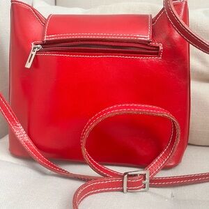Vibrant Red Leather Crossbody Bag with Glossy Finish