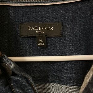 Stylish dark blue denim jacket with ruffle. Perfect year round with a variety of outfits. Like new!