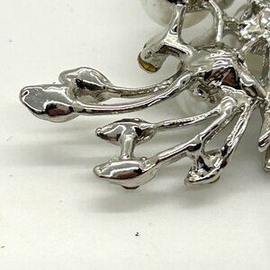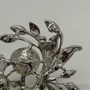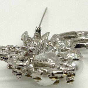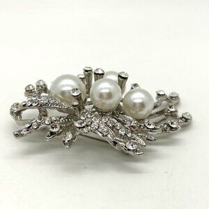 Faux Pearl & Rhinestone Brooch Silver-tone Floral Pin Glam Elegant