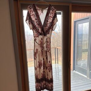 Worn once for an event. Very light weight and comfortable. Also figure flattering with tie waist.