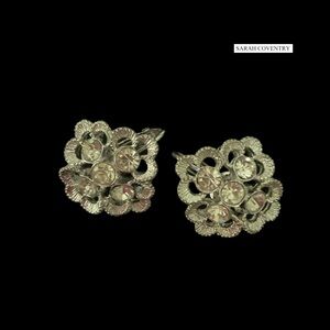 VTG 1969 Sarah Coventry “Demi-Flower” Silver Tone Rhinestone Clip On Earrings