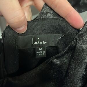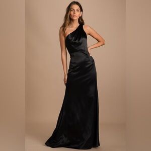 NWT Lulus On the Guest List Black Satin One-Shoulder Maxi Dress