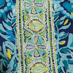 EUC! Lilly Pulitzer Kelby Stretch Shift Dress in Midnight Cove Engineered, women's Size 4. Beautiful! This floral and geometric print dress is bright and colorful, fun for any occasion. It is sleeveless and has a zip up back. The zipper has the cutest sand dollar zipper pull with tassel. The fabric is rayon and spandex, very comfortable for the summer months. Measurements are shown in the photos. It comes from a smoke and pet free home. No defects found upon final inspection. Message me if you have any questions. Enjoy!