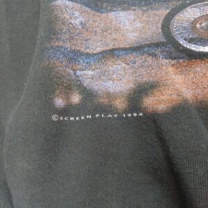 Vintage country music fans and 90s collectors alike will love this original 1994 Sammy Kershaw crewneck sweatshirt. Made in the USA on a classic Fruit of the Loom 50/50 cotton-poly blend, this soft and worn-in piece is tagged adult XL and features vibrant front and back graphics. The front showcases a motorcycle scene from "Third Rate Romance" with the Screenplay 1994 credit, while the back spells out "Feeling Good Train" with a bold gold record motif.