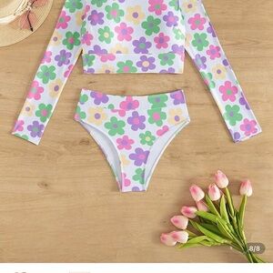 SHEIN Floral Long Sleeve Bikini Set - White, Purple, Green, Pink brand new