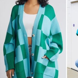 Dressed in Lala Love You Oversize Checkerboard Cardigan. Size S/M. NWT.