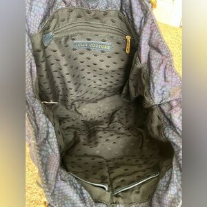 This Juicy Couture vintage tote bag features a unique navy and purple snake-print design. It is crafted in premium materials with luxurious accents, making it a standout accessory.