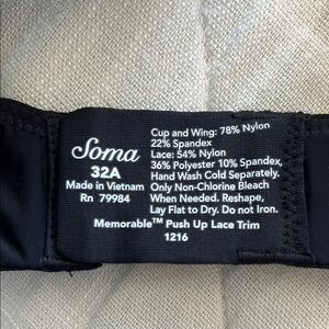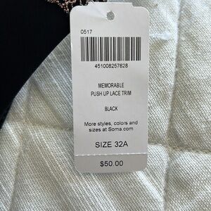 NWT Soma Women's Memorable Push-Up Lace Trim Bra in Black - in brand new condition with tags! Size 32A