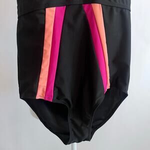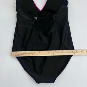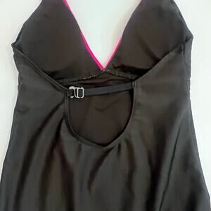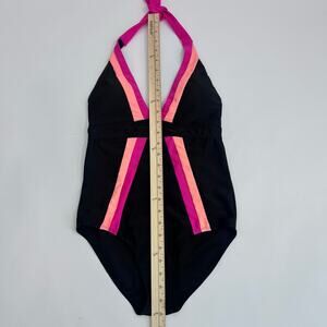 CROMER RESORTWEAR WOMENS ONE PIECE SWIMSUIT VNECK HALTER SZ 10 BLACK PEACH PINK