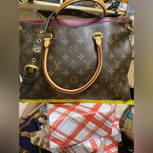 NEW! NEVER USED LOIUS VUITTON Large Pallas PM Shoulder/Tote/Hand Bag Includes Detachable Original Monogram Strap And Is In EXCELLENT PRISTINE CONDITION! Also With COA And Original Dust Bag Included! Let’s Elevate your style with this Louis Vuitton large Pallas PM handbag in classic brown flower monogram canvas and the perfect wine red exterior and interior. Perfect for any occasion, this bag combines luxury and functionality. Box Not Included! SHOP AROUND AND CHECK OUT OUR LOUIS VUITTON AWESOME COLLECTION! MATCH THIS BRAND NEW BEAUTY WITH THE MATCHING AND ALSO BRAND 🆕 MATCHING WALLET FOR AN AMAZING BUNDLE OFFER! JOIN US ON OUR NEXT LIVE SHOW AND CHECK OUT THIS BEAUTY AND OTHER UNLISTED ITEMS FROM DESIGNER TO FASHION! AND ENTER FOR THE CHANCE TO WIN 🏆 OUR 🆓 CUSTOMER APPRECIATION GIVEAWAYS! SEE YOU ALL HERE 💖
