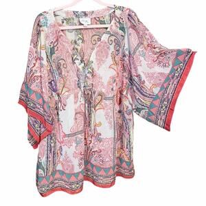 Elegant brown and white patterned kaftan. Perfect for casual wear. This could be used as a housecoat, night gown or dressed up with accessories as a dress. Satin silky texture. Zip front.