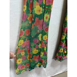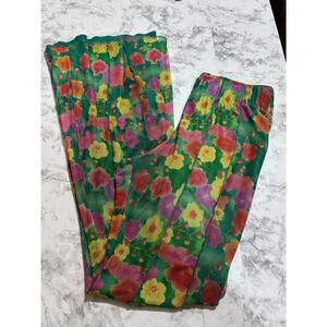 Forever 21 Mesh Green Floral Print Pant L Lined Casual Beach Coastal Boho Hippie