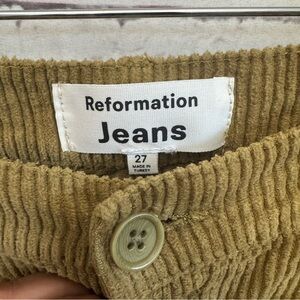 Reformation Jeans Cynthia Button Fly High Rise Straight Corduroy Pants Martini