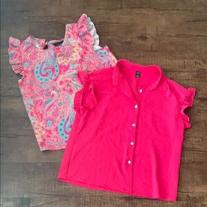 Please note one minimal pull on hot pink blouse (refer to photo)