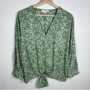 beach lunch lounge Blouse in Vibrant green Floral Print blouse size Small